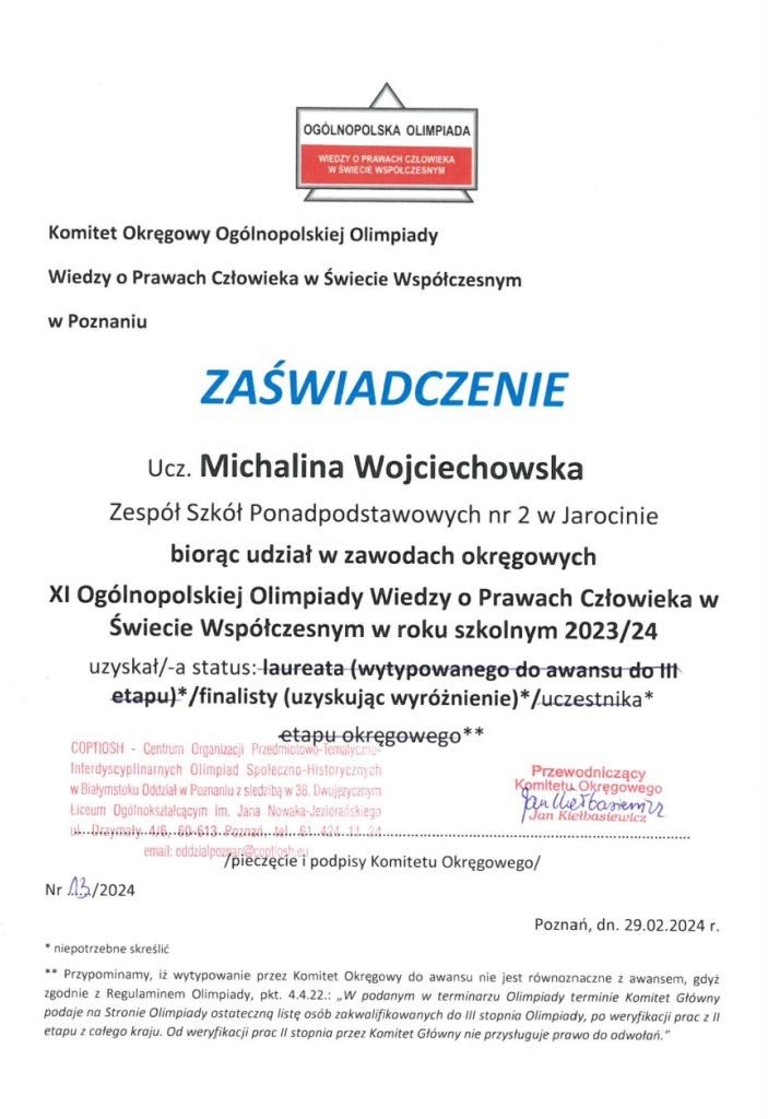 Olimpiada Wiedzy o Prawach Człowieka